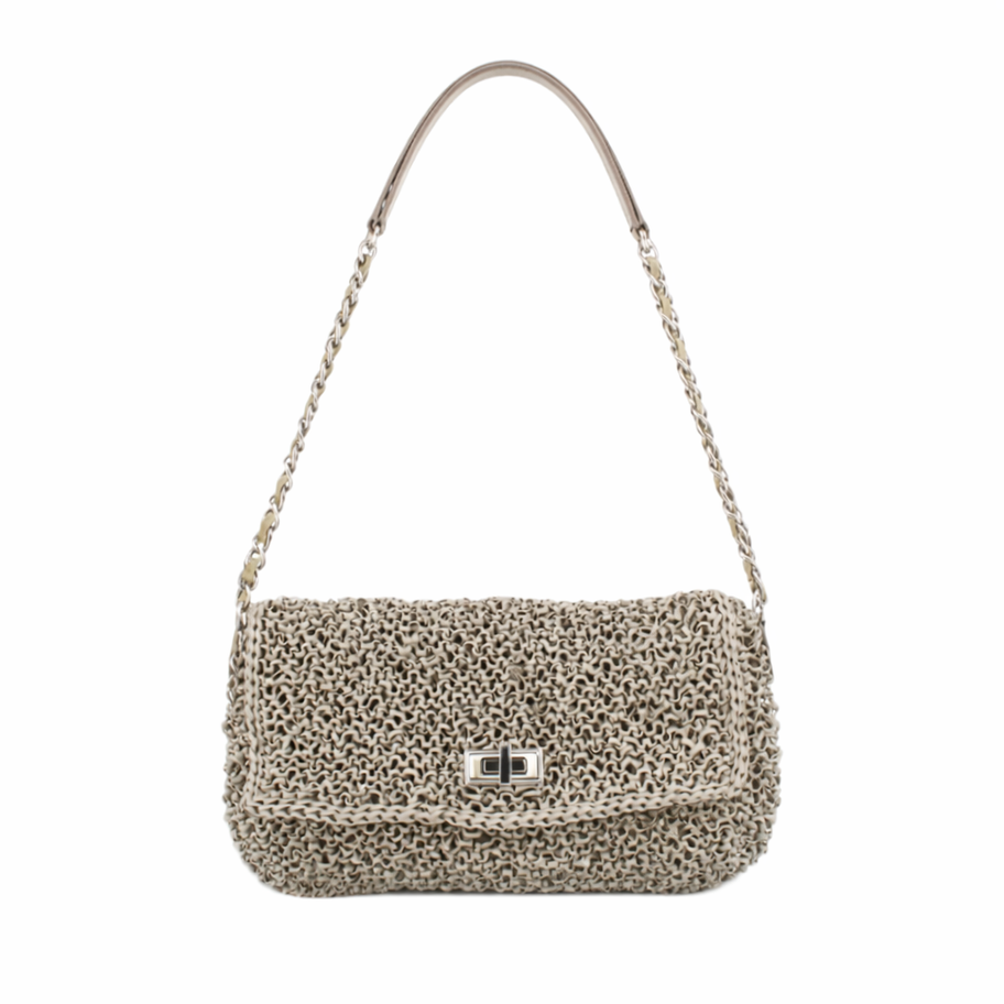 Details: Geflochtener, gold-beiger PVC-Draht mit silberfarbener Hardware